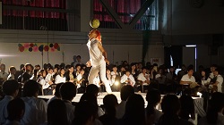 | オープニングでは、生徒会執行部が製作した動画が放映されました。ユーモアたっぷりの演出に生徒や教職員は拍手喝采しました。 執行部企画では事前投票で選出された奥越明成のMr.&Miss.や可愛い男子&かっこいい女子がステージに上がりました。 フリータイムでは模擬店が大盛況で、ステージではカラオケの予選がありました。また、各委員会や各学科、コースの展示・販売も好評でした。文化委員会は校門ゲートを作成し、幕間の企画でも学校祭を盛り上げてくれました。 生活コースのドレスファッションショーでは、3年生の課題研究の授業で製作したドレスを着て生徒が登場すると会場から歓声があがりました。また、今年も本校教諭のエスコートが加わり華やかなドレスに花を添えていました。 午後は芸術鑑賞として、サーカスを鑑賞しました。超人的なパフォーマンスで生徒たちはハラハラドキドキだったようです。 |