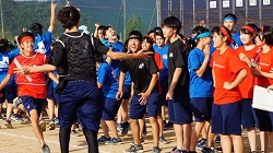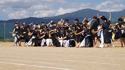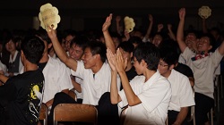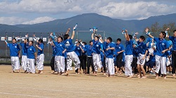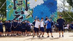 | 曇り空が心配される中、第5回奥越明成高校体育祭が無事に開催されました。、 各色の組長の力強い選手宣誓で体育祭の幕が開け、さまざまな競技が行われる中、生徒たちは自分の色の応援に熱が入りました。 昼食休憩時には、PTA役員の方々が焼き鳥とジュースを販売してくださいました。生徒達の列ができて大盛況でした。 午後の部は、応援合戦から始まりました。赤組、黒組、青組それぞれが、個性あふれるパフォーマンスを披露し、近年稀に見る接戦を繰り広げました。 閉会式では各表彰が行われ、PTA会長様の万歳三唱、全員での校歌斉唱で感動的に幕が閉じました。 |
