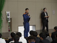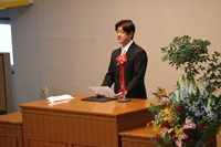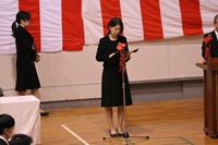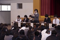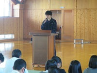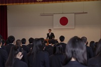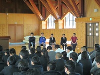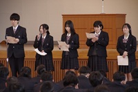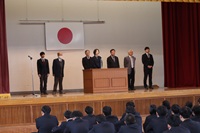 新任式では新しく9名の教職員の方をお迎えしました。生徒会長が歓迎の挨拶を述べました。
